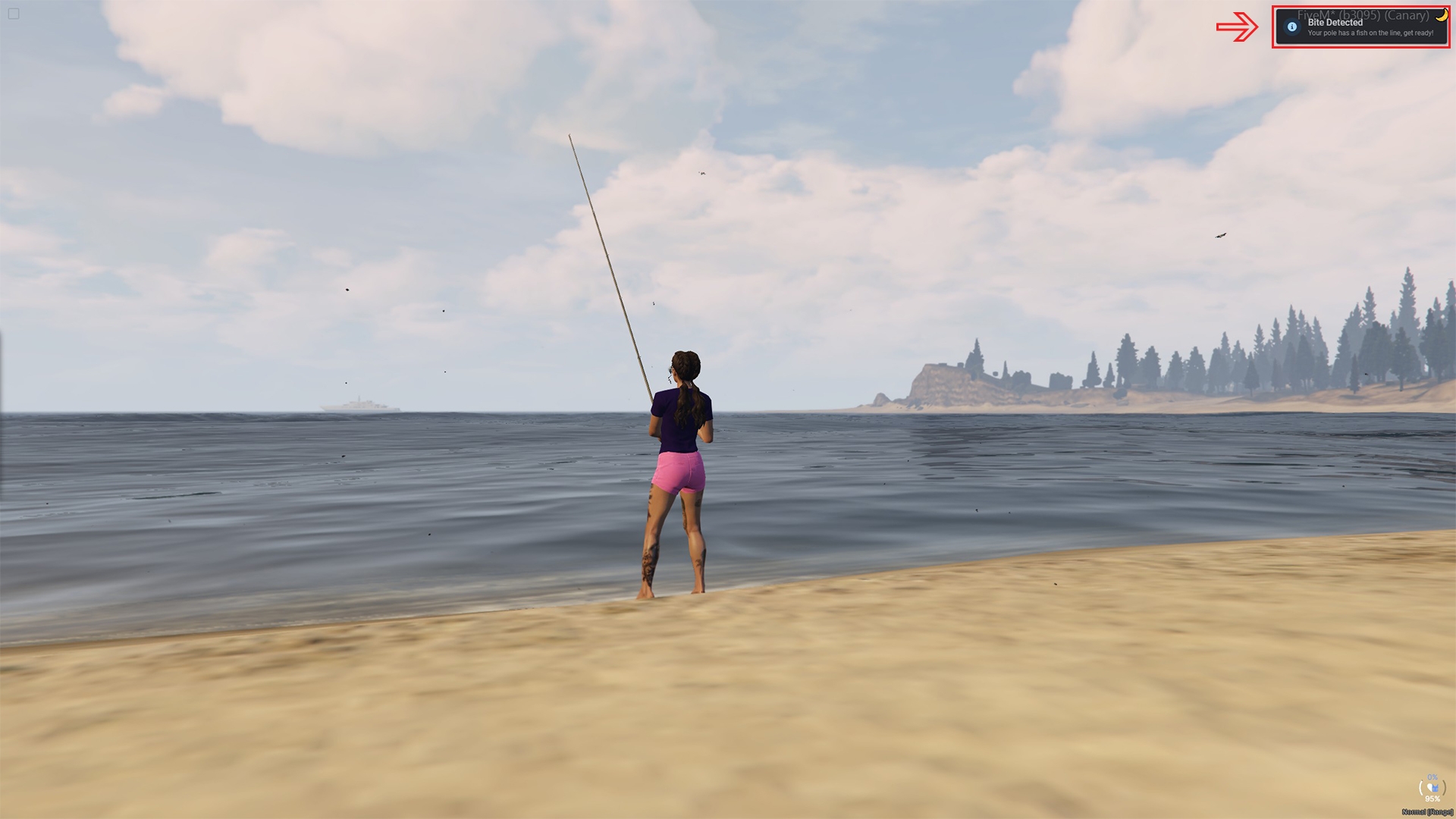 Use your left mouse button to cast a line, then wait patiently. Just before your bite, you will receive a notification in the top right-hand corner.