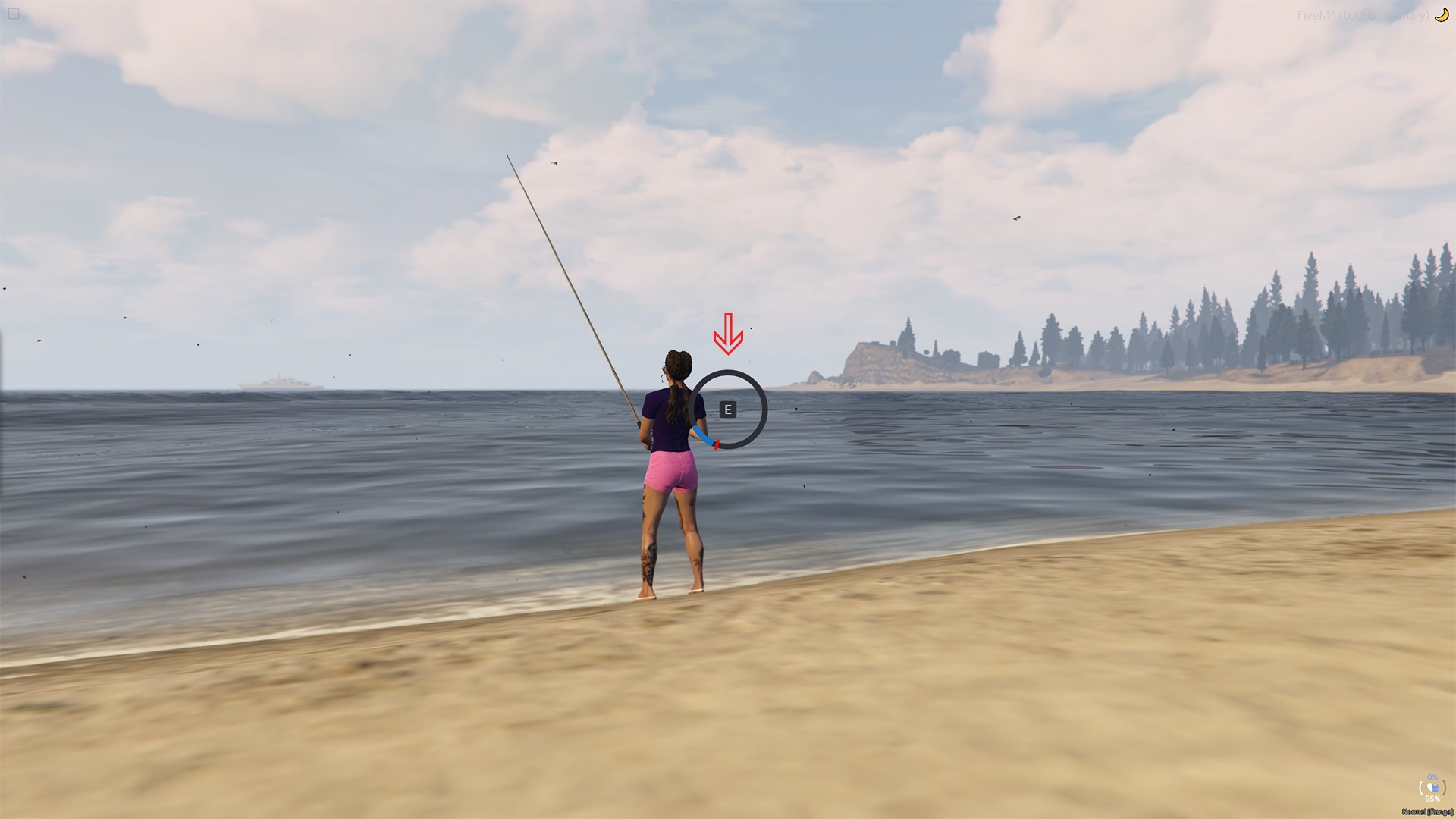 When a fish bites, a mini-game activates requiring you to press E at the right moment to make a successful catch. Each type of fish presents varying levels of difficulty in the mini-game.