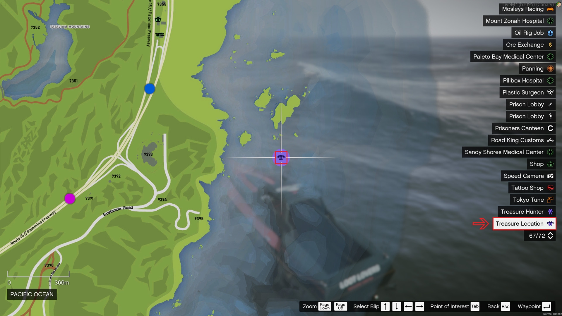 Once you start the job, you will spawn inside a boat. Open your map and look for the Treasure Location blip, then drive your boat over to it. Sometimes they will be really close, sometimes they will be far away - it spawns them for you at random.