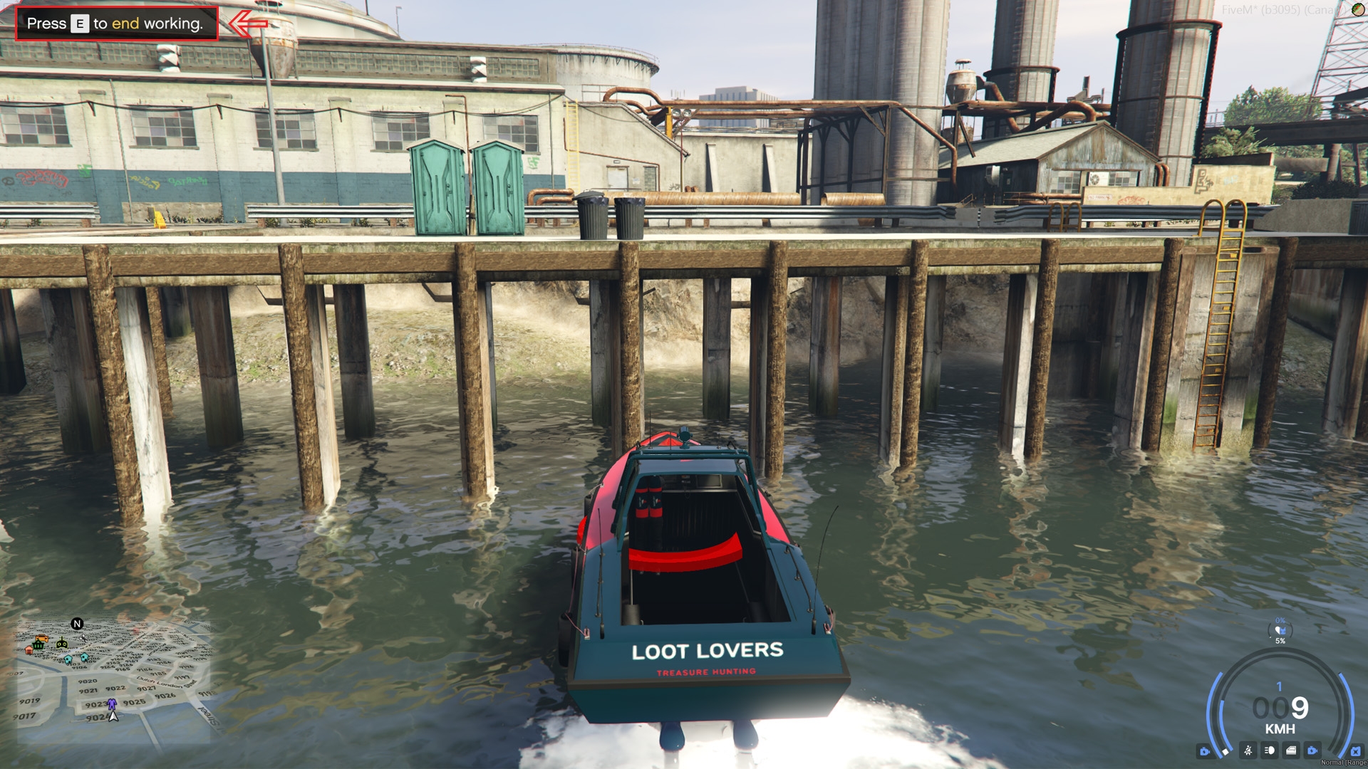 There will be a big red circle for you to drive the boat into. Once you hit the circle, press E to end working. Don't forget to take off your scuba gear before leaving.