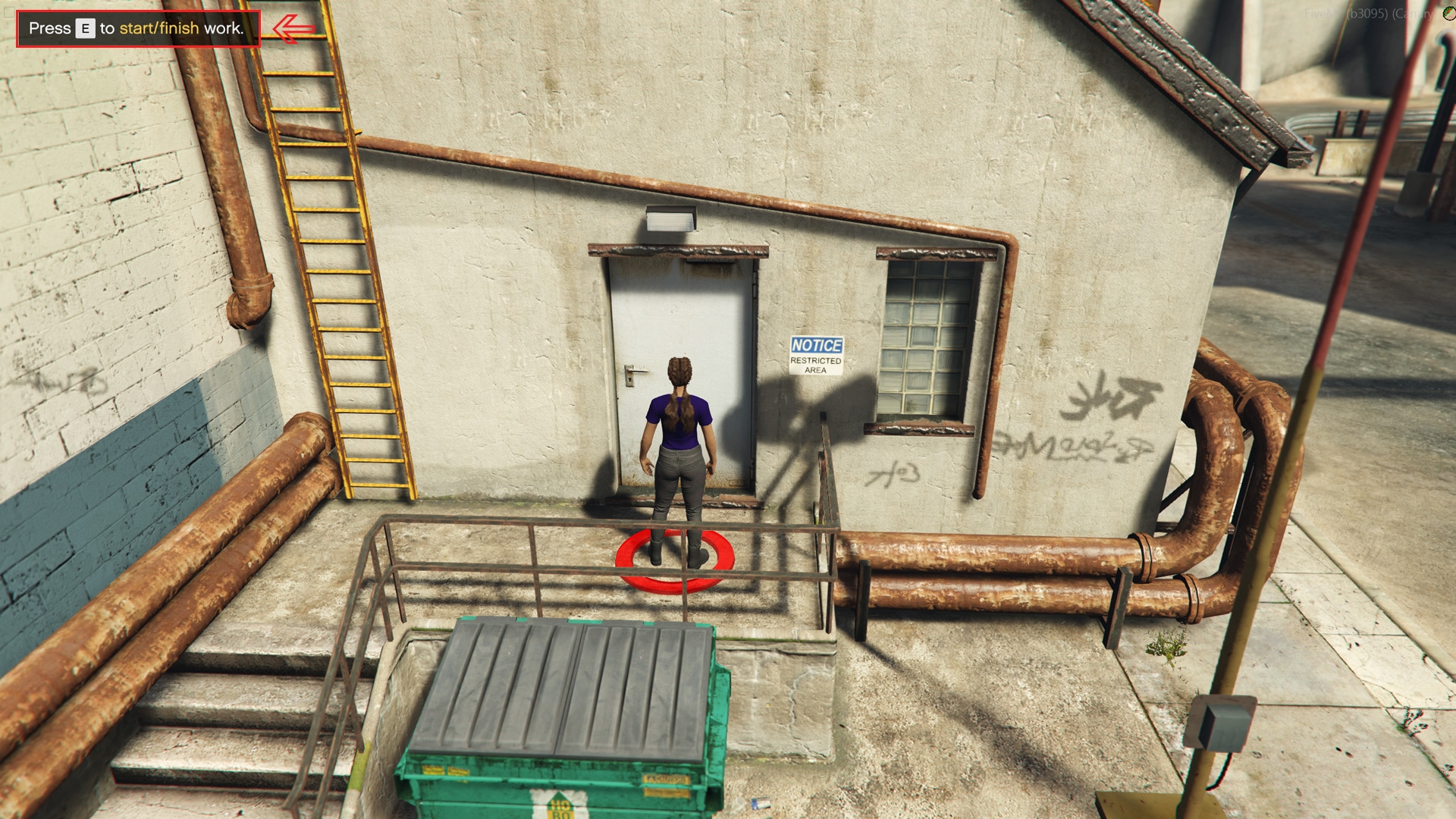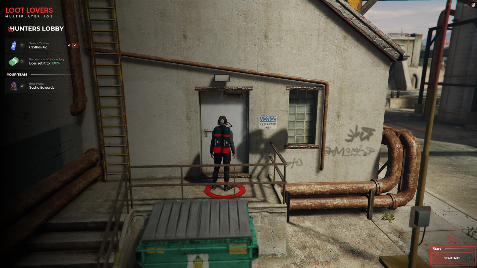 From here you can recruit other players next to you and change your clothes to work clothes (or change back to civilian clothes). Once you are ready and have changed into the scuba gear, click Start Job in the bottom right.